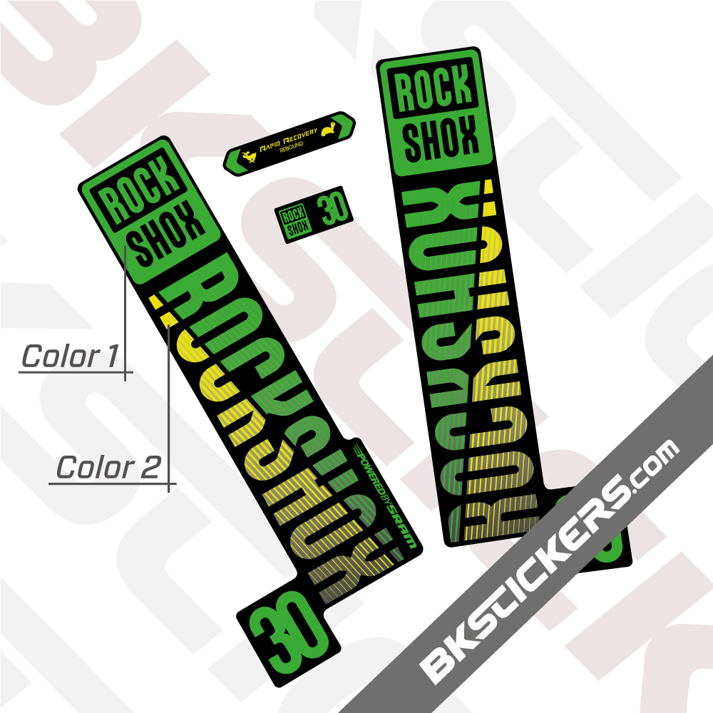 Rockshox 30 2020 Black Fork Decals kit is available in sixteen colorways and will fit any Rockshox 30 2020 fork model.
