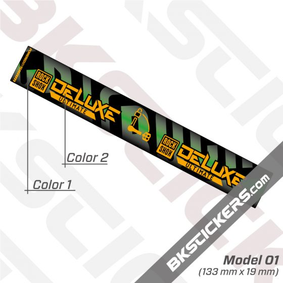 Available in sixteen colorways, Rockshox Deluxe Ultimate 2021 Inverted Rear Shock Decals kit will fit any Rockshox Deluxe Ultimate 2021 Inverted Rear Shock kit model.