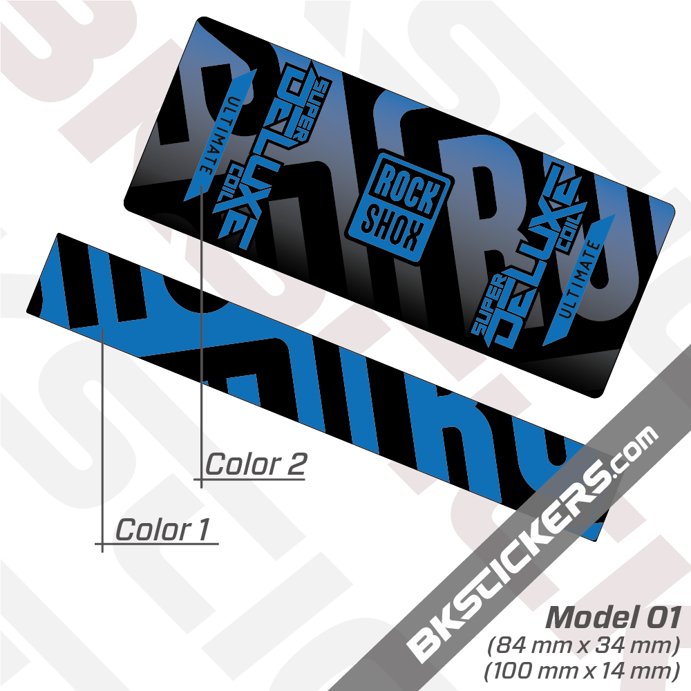 Rockshox Super Deluxe Coil Ultimate 2021 Inverted Rear Shock Decals kit are printed onto pro grade vinyl and laminated to produce a durable and glossy / mate stickers.