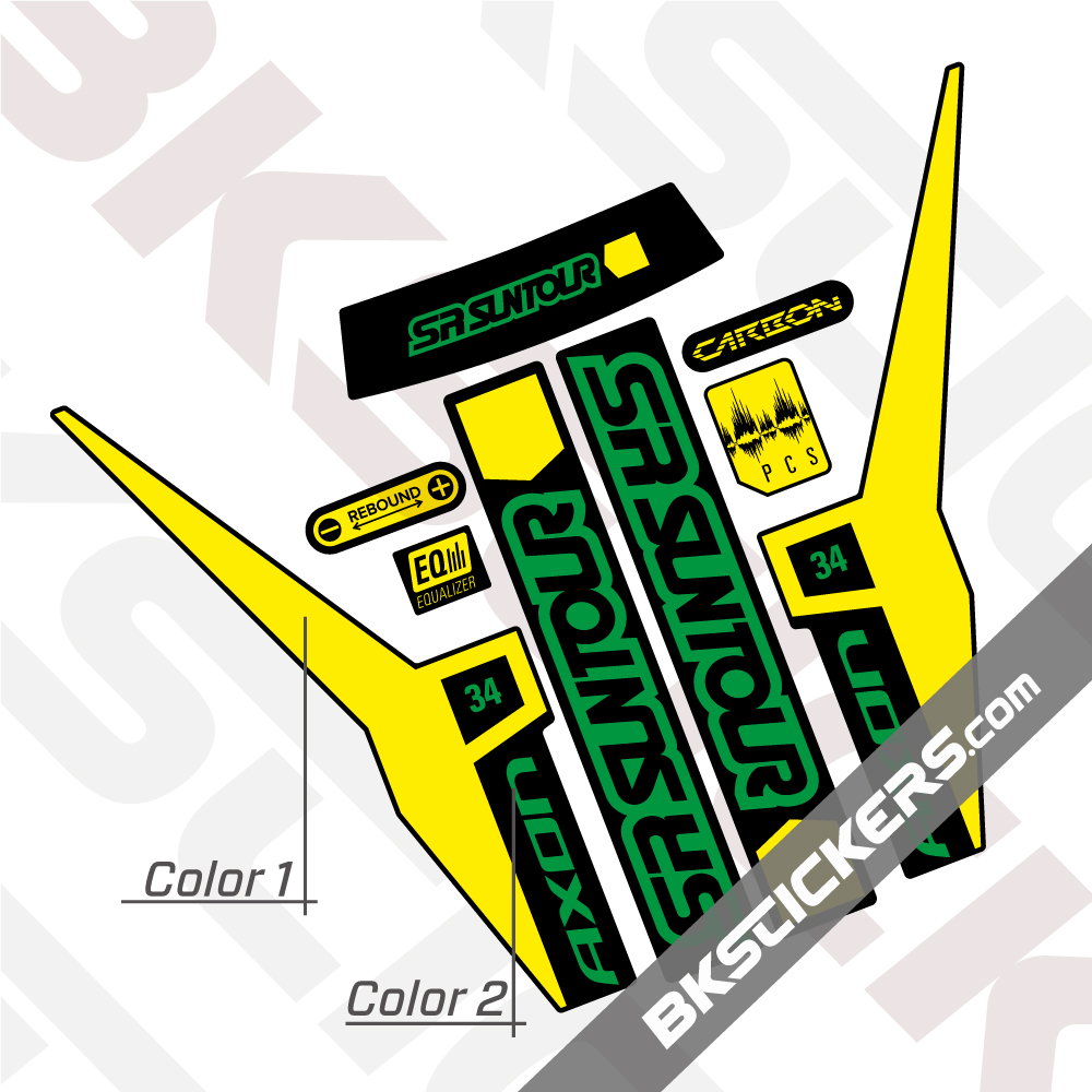 SR Suntour Axon Werx 34 EQ 2021 Black Fork Decals kit are printed onto pro grade vinyl and laminated to produce a durable and glossy / mate stickers.